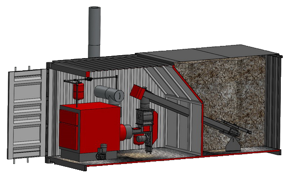 Komplet biobrændsels kedelcentral med integreret silo