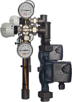 TW-1 kan bestilles med komplet kedelshunt-sæt, der indeholder 3-vejs blandeventil m. føler, fittings, termometre, samt Alpha-pumpe for cirkulation af radiatorvandet.